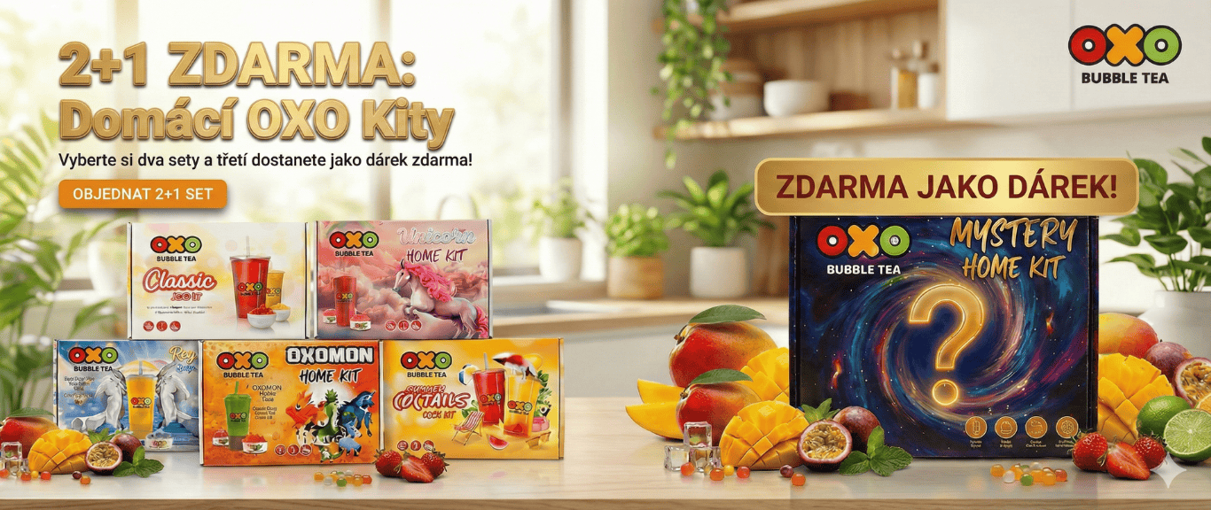 Kompletní OXO Bubble Tea SUNSET SET pro přípravu 100 porcí – sada inspirovaná barvami a pohodou letního podvečera. Obsahuje osvěžující ovocné sirupy (Jablko-Limetka,...