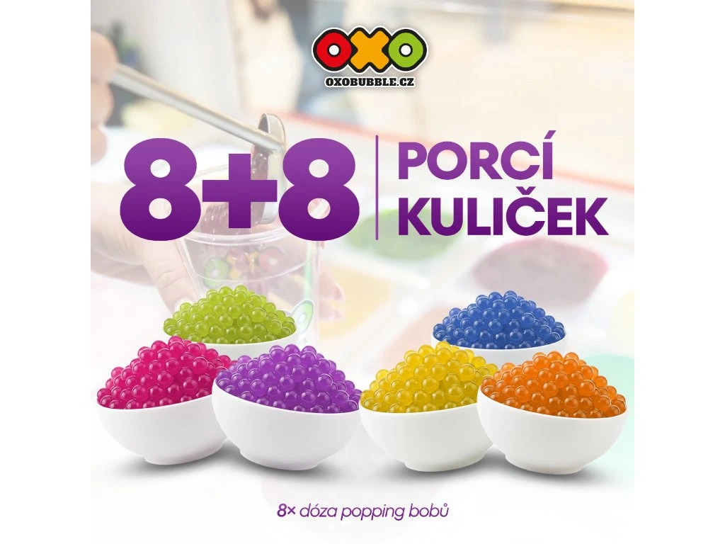 OXO Popping Boby – Random porce 8+8 přinášejí zábavný a pestrý topping do každého Bubble Tea nápoje.