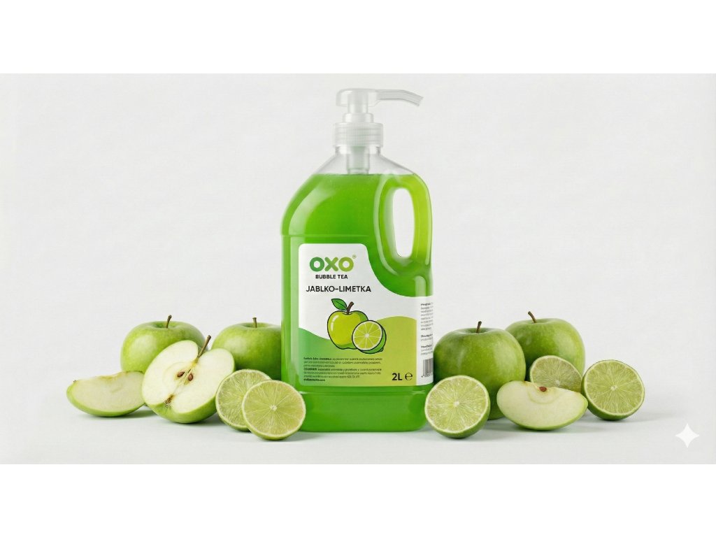 OXO Čajový Koncentrát Jablko – Limetka Maximální osvěžení v každém doušku. Tento koncentrát spojuje šťavnatou chuť křupavého zeleného jablka s výraznými citrusovými tóny limetky. Je perfektním základem pro kyselkavé Bubble Tea, letní limonády nebo nealko koktejly. Z jednoho 2litrového balení připravíte 40–55 porcí, což zaručuje skvělou výtěžnost. Praktická pumpička pro čisté dávkování je součástí balení.