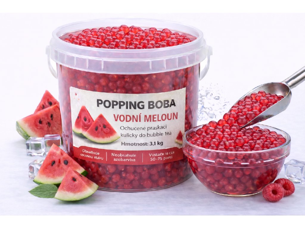 OXO Popping Boby – Vodní meloun jsou profesionální topping určený pro Bubble Tea bary, kavárny, cukrárny, fast-food provozy i sezónní stánky. Díky své extra šťavnaté a přirozeně sladké chuti patří mezi absolutní favority letní sezóny a zákazníkům přinášejí okamžité osvěžení.